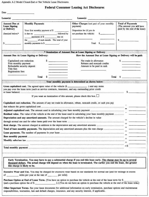 Consumer Leasing Act (Regulation M) 12 CFR 1013