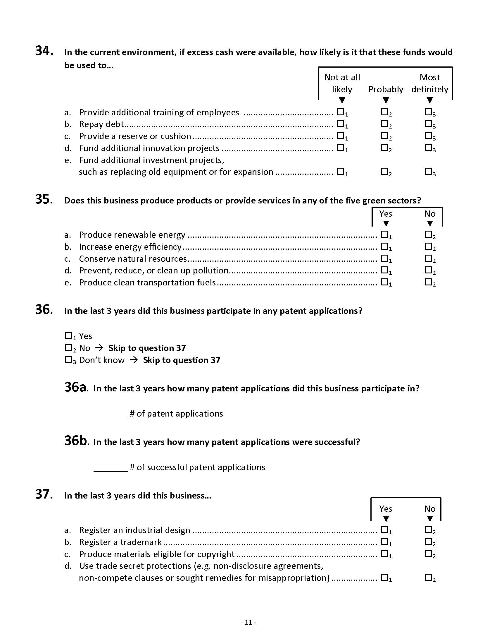 Questions 36-36b that originally asked about patents the establishment applied for is modified to include participation in patent applications.