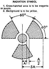 (e) Caution signs, labels, and signals—(1) General. (i) Symbols prescribed by this paragraph shall use the conventional radiation caution colors (magenta or purple on yellow background). The symbol prescribed by this paragraph is the conventional three-bladed design: