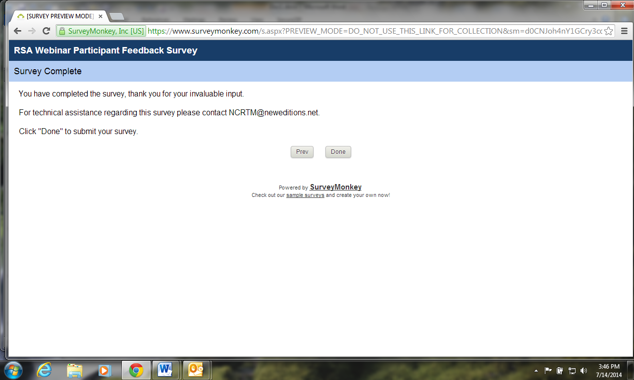 We would like to invite you to participate in a brief feedback survey about your webinar experience. Your opinion is very important to us and we will use your responses to continuously improve our services. Your individual answers will be kept confidential. If you have any questions about this survey, you may contact us at NCRTM@neweditions.net