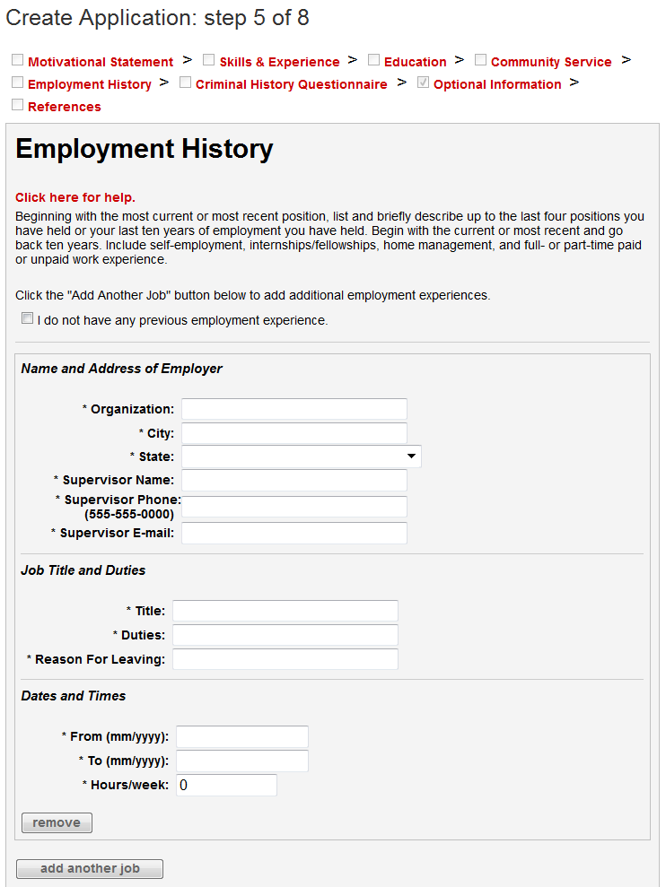 AmeriCorps NCCC Team Leader applicants complete the below online questions when submitting their general AmeriCorps application (above) to an AmeriCorps NCCC Team Leader position posting: