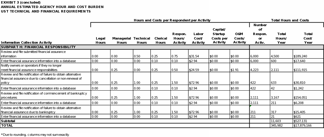 33 While EPA has included the requirement to obtain financial assurance as an annual burden, it is expected that all existing UST owners and operators have already read the financial responsibility regulations. Therefore, this ICR assumes that owners and operators of only the owners and operators of newly regulated facilities will read the financial responsibility regulations each year (i.e., 3,653 owners and operators annually).