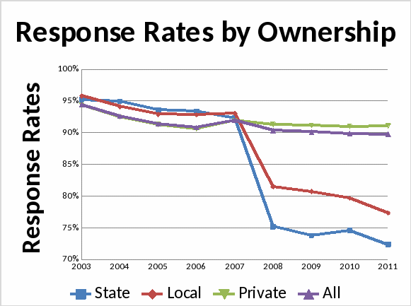 Response rate. The survey is a mandatory survey, with the exception of State and local government units in the States listed below: