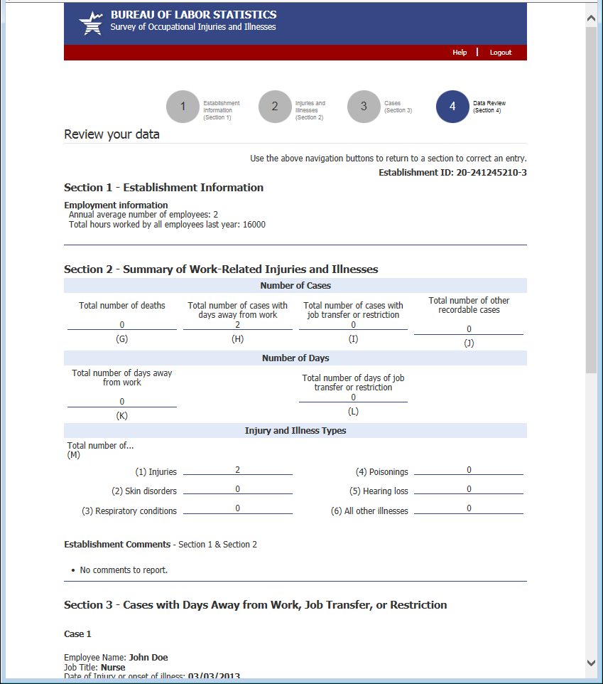 Section 2: Summary of Work-Related Injuries and Illnesses, 2013