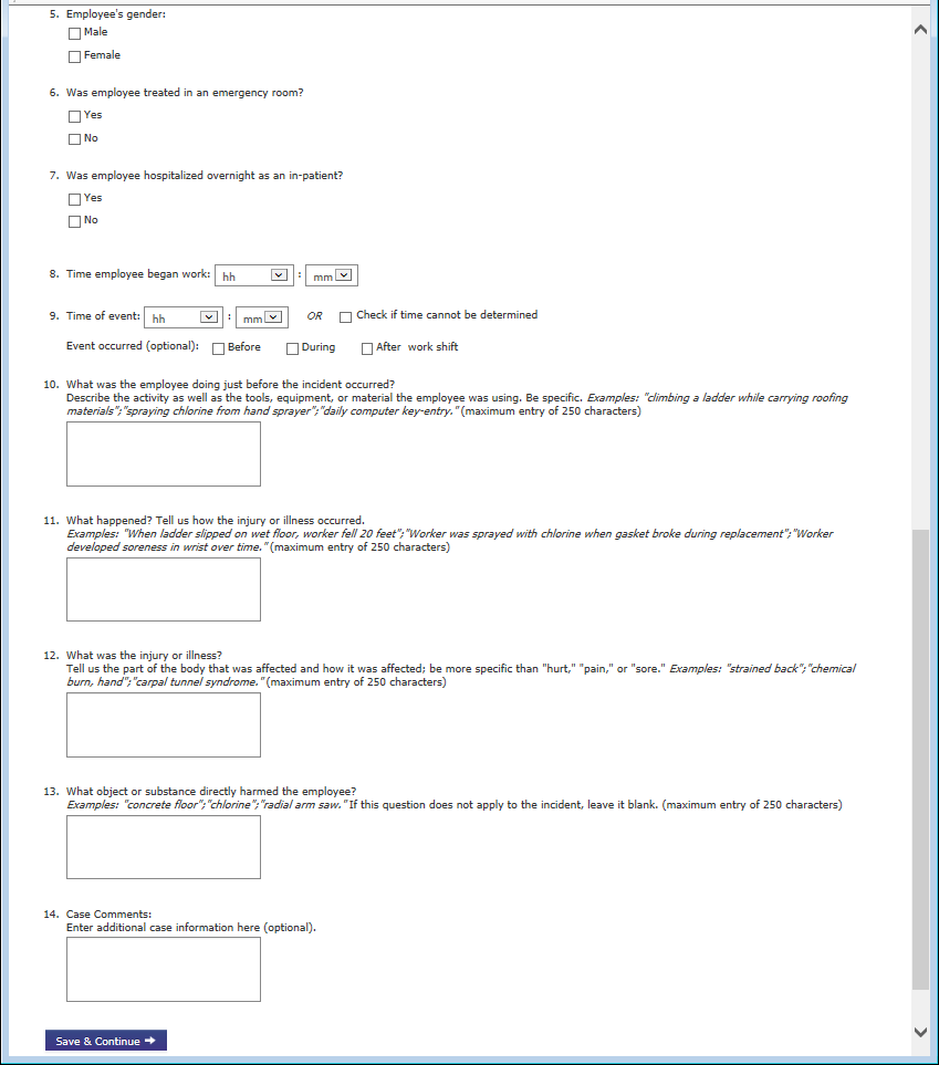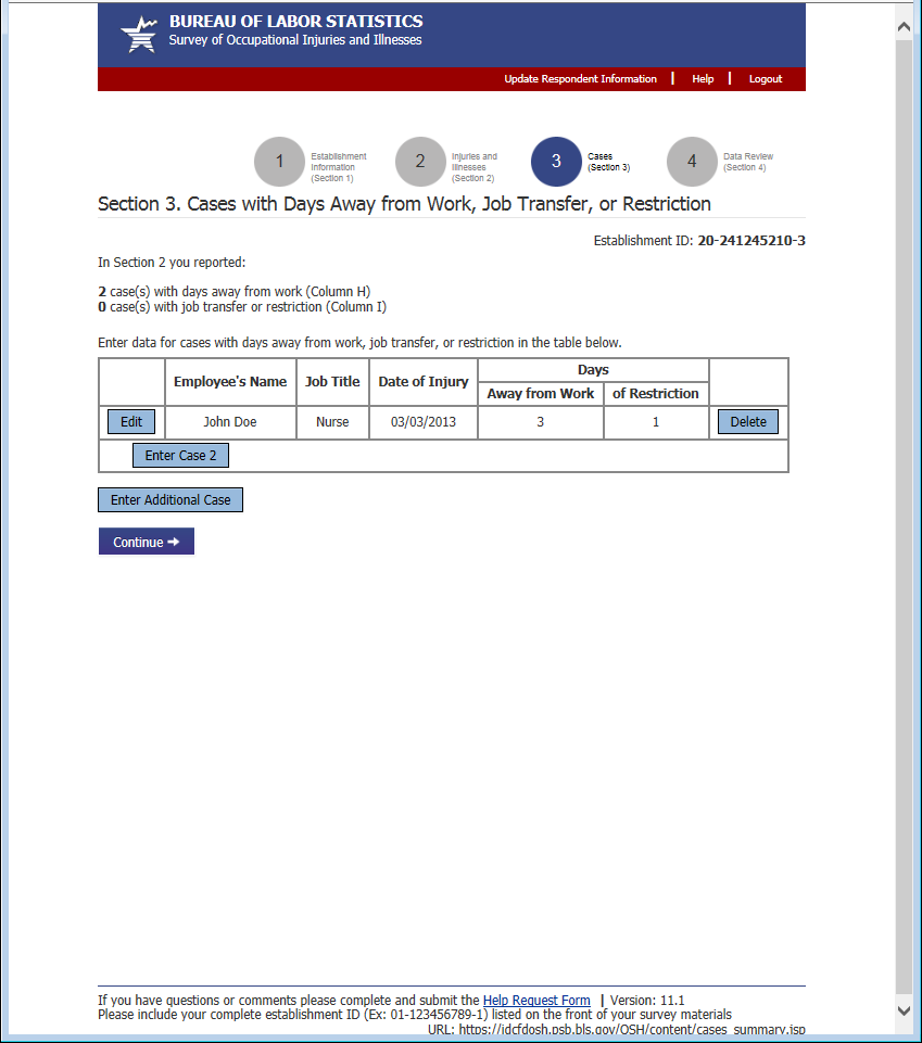 Section 3: Cases with Days Away from Work, Job Transfer, or Restriction