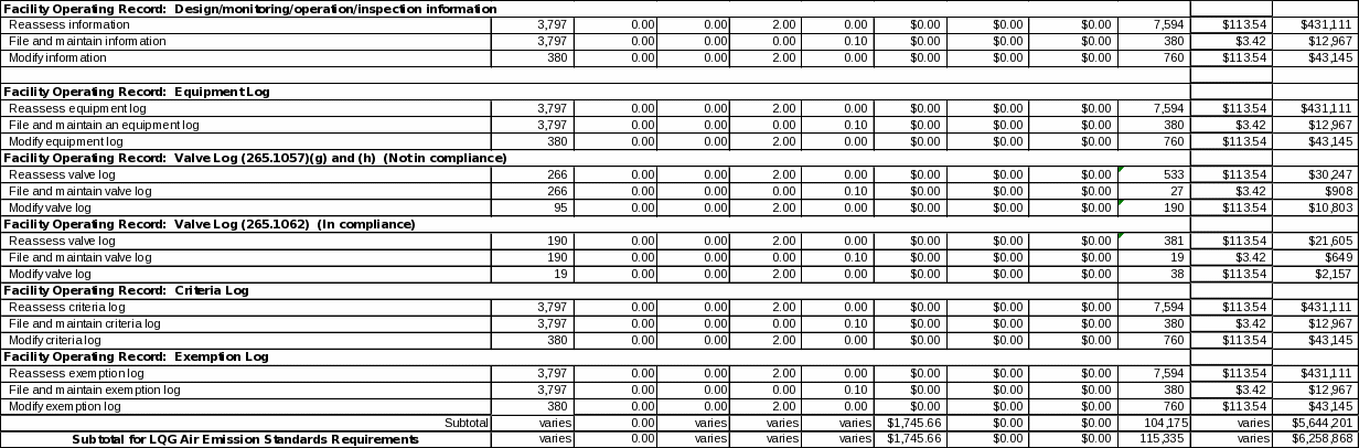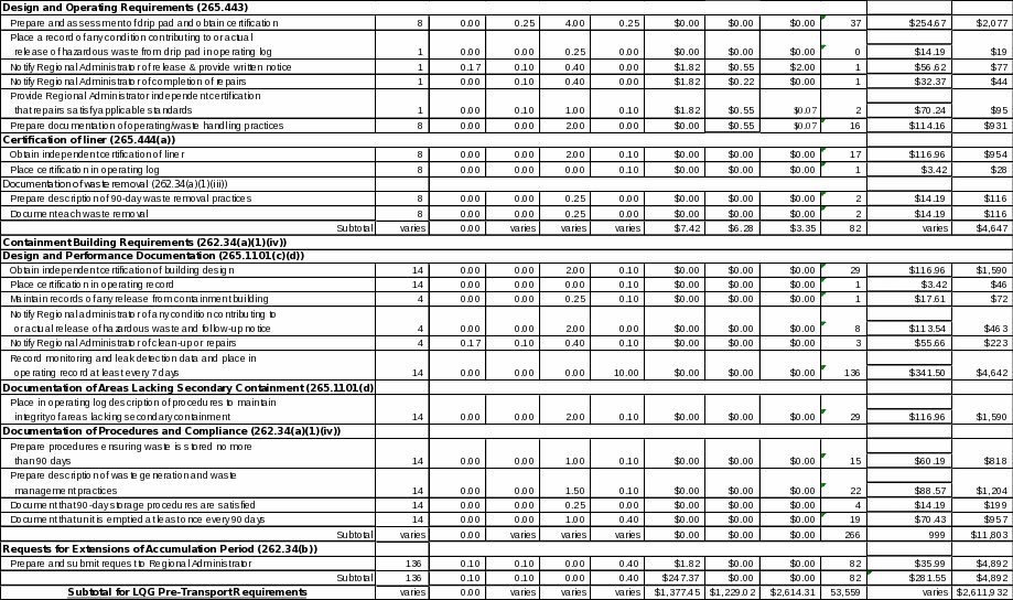 Based on an analysis of the 2009 BRS, as well as discussions with a sample of large quantity generator facilities, EPA estimates that up to 3,797 (or 28 percent) LQGs are subject to 40 CFR part 265, subpart BB requirements – depending on the specific paperwork burden category.