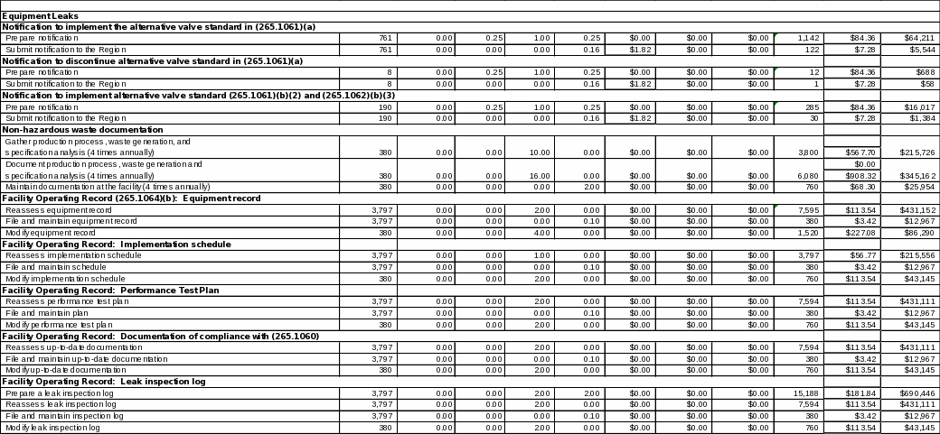 This ICR assumes that generators with valves subject to section 265.1062 have already prepared a valve log. EPA estimates that all generators with valves subject to section 265.1062 (approximately 1.4 percent or 190 units) will reassess, file, and maintain their valve log, and 10 percent (approximately 19 units) will modify it annually.