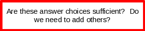 | About once a month | Text Field – limited to 100 characters | ||||||||||||
