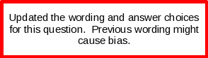 | Every 6 months or less often | Dropdown (Select-one) | ||||||||||||