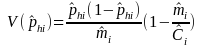 = variance of the proportion of the cases with characteristic h for industry i