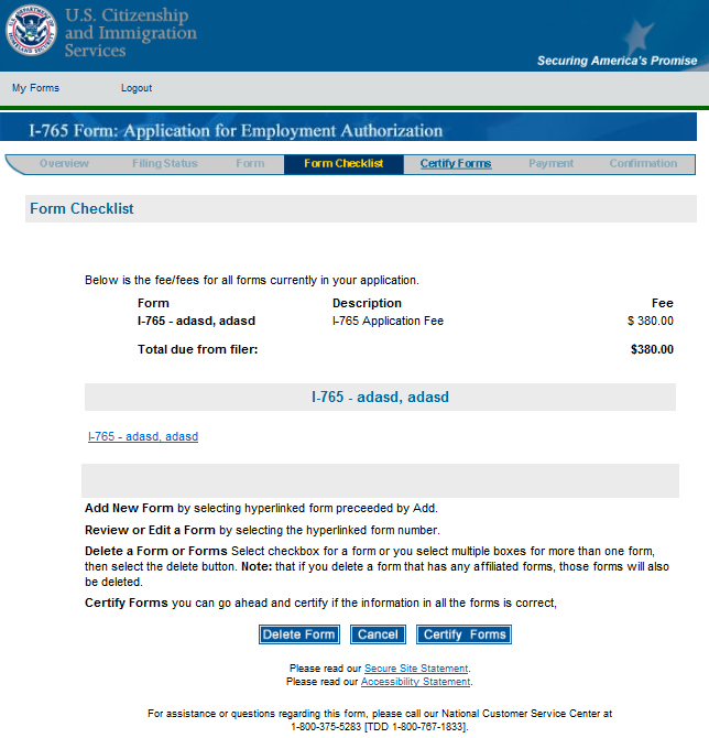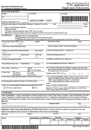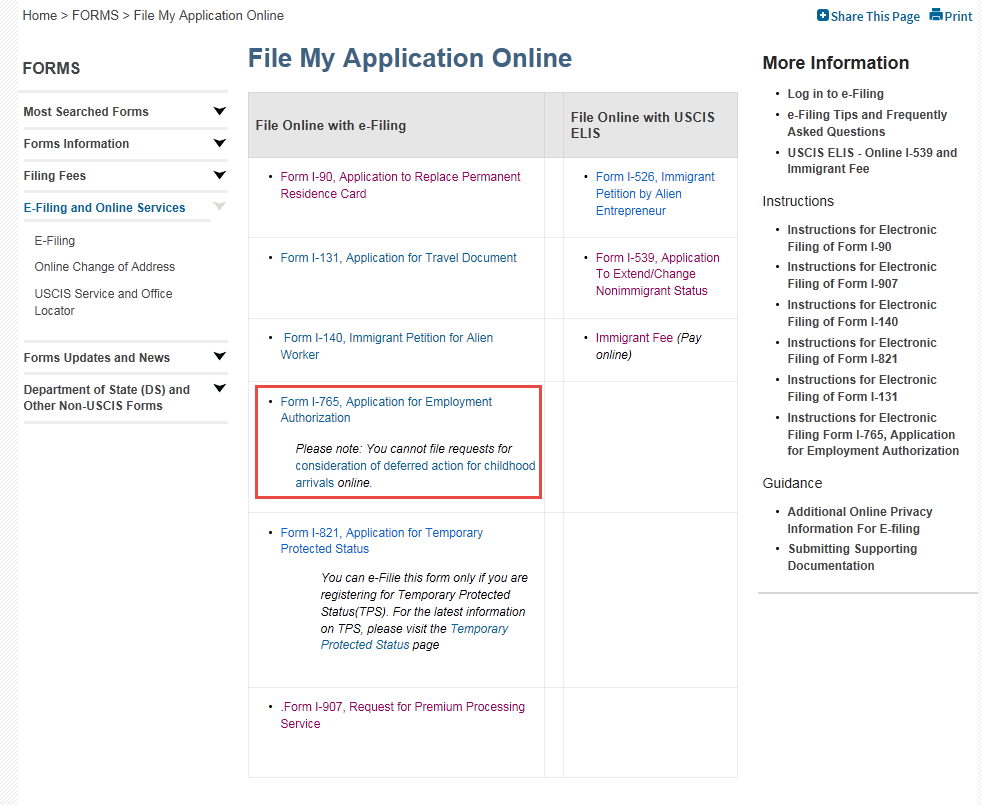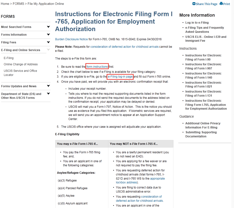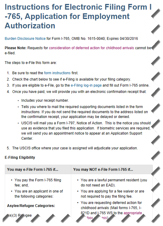 *I-765 can be e-Filed as a stand-alone form or concurrently with the I-821