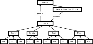Data Consolidation Using the Federal Client ToolAt each level up the chain of command, data are consolidated into a department, county, or State database. The consolidated data are then forwarded to the next level. Roll your mouse over the boxes below to learn move about data consolidation at each level. |