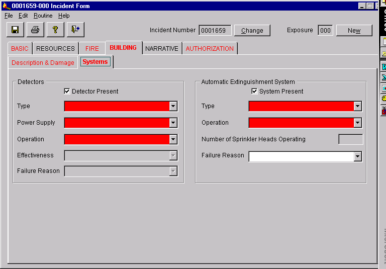 Exposure: Used when there is an exposure fire as a result of the original fire. After finishing the report for the original fire, save and close. Reopen original, click on the “Exposure” button, and say “Yes” to saving the original report number. A report on the exposure fire can now be completed.
