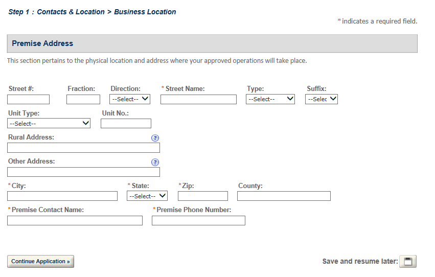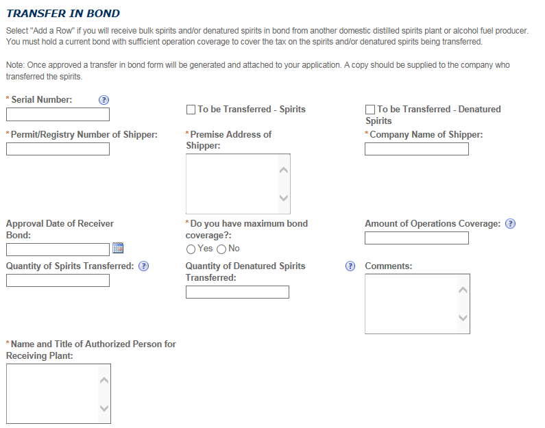 Screen shots for the Distilled Spirits Plant Application follow: