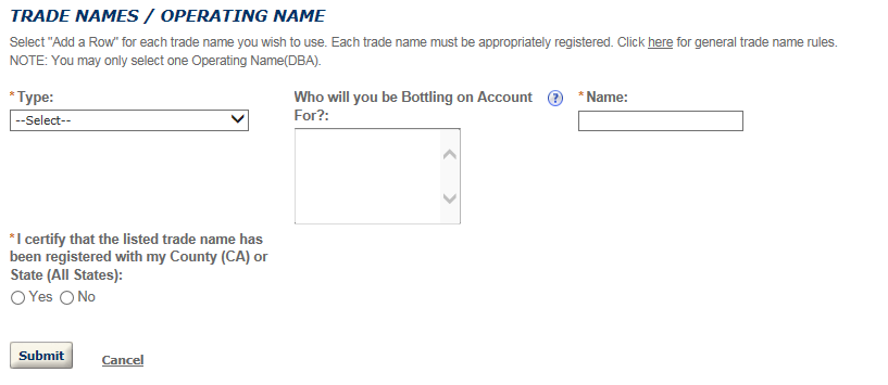Permits Online DSP Application Screen shots (includes TTB F 5110.25)