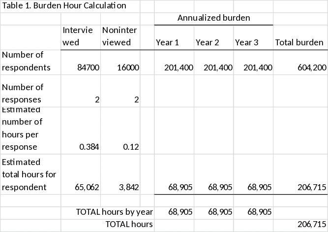 While the redesign and other NCVS-related work are discussed throughout this supporting statement as they have implications for the core, the BJS is specifically requesting clearance for the core NCVS. The core NCVS includes the administration of the NCVS-1 (screener) and NVCS-2 (crime incident report) instruments to a nationally representative sample of about 85,000 persons age 12 or older living in households in the United States. The core NCVS survey instrument covers eight general areas: 1. incidence of rape/sexual assault, robbery, assault, personal larceny, burglary, motor vehicle theft, and other theft; 2. characteristics of these victimizations, including location, time, presence of a weapon, injury, and property/monetary loss; 3. characteristics of the victims, including age, race, gender, disability, and occupation; 4. relationship between victim and offender and offender characteristics; 5. emotional impact of victimization; 6. victim self-defense and bystander intervention; 7. offender characteristics; 8. reporting to police and police response; 9. bias- or hate-motivated victimizations. Core work also includes the analysis and dissemination of data products and reports stemming from the core collection, as well as technical and methodological analyses and reports based on the sampling for, administration of, and analysis of data from the NCVS-1 and NCVS-2 instruments.