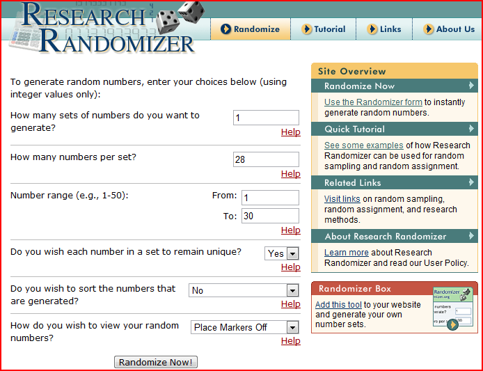 (A short tutorial is available here: http://randomizer.org/lesson1.htm)