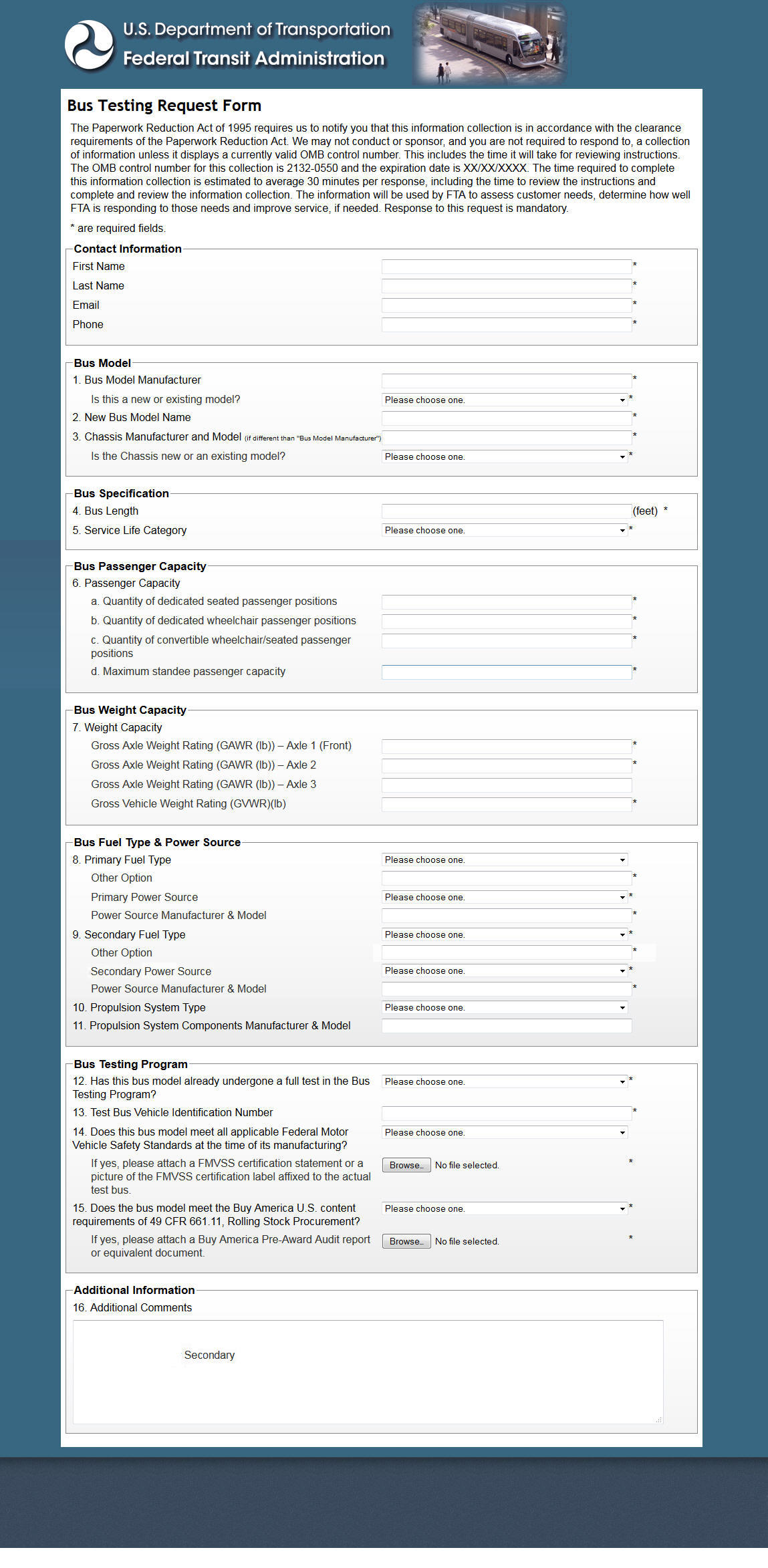 2132-0550 Bus Testing Program Request Form