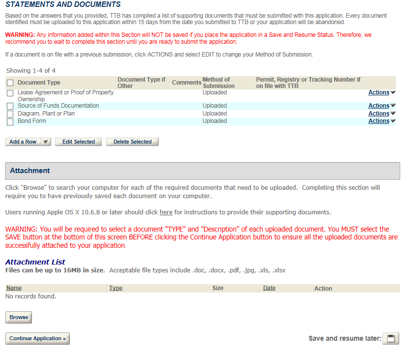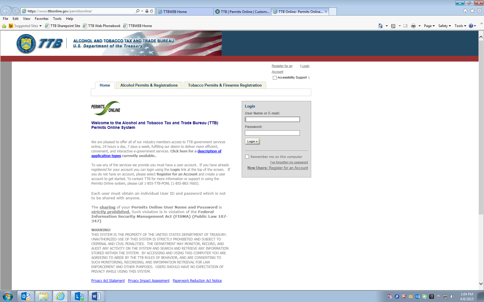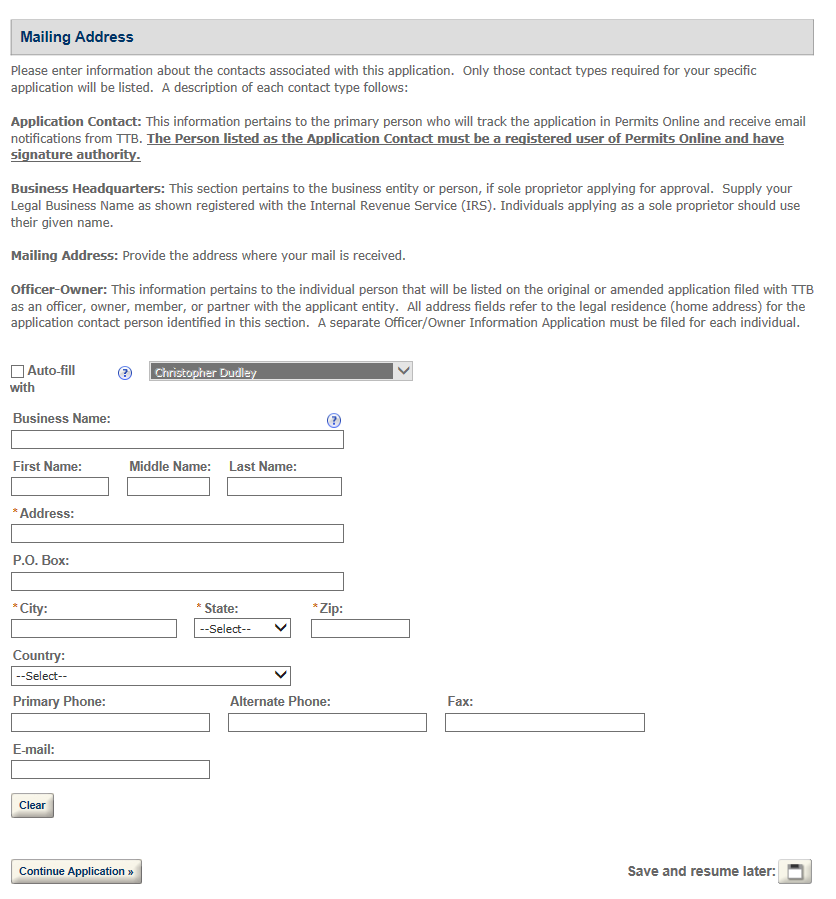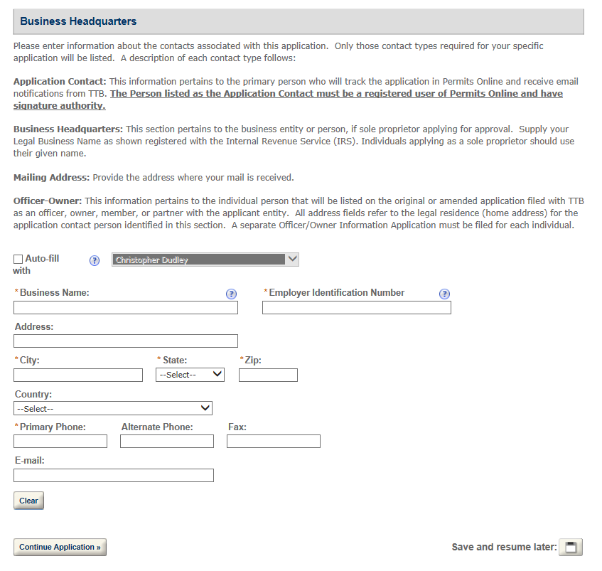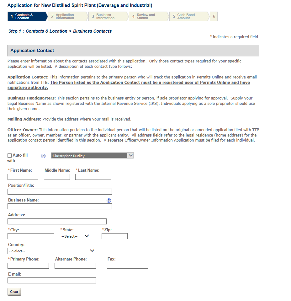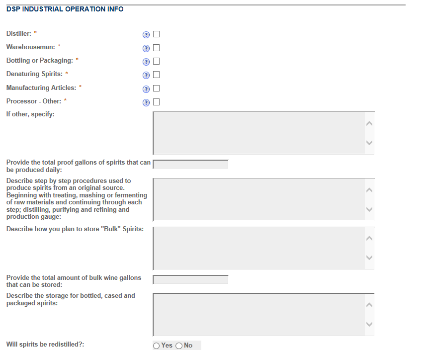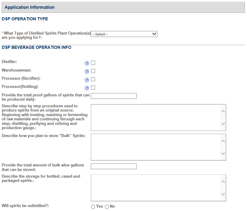 Permits Online DSP Application Screen shots (includes TTB F 5110.25)