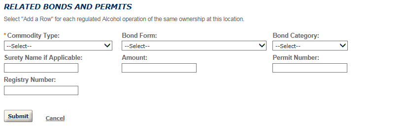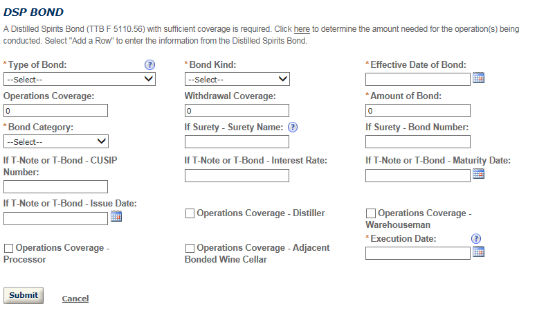 - Wine Bond Information (OMB No. 1513-0009): The information is used by the proprietor, or the proprietor and surety company, as a contract to ensure tax payment. The information requested is required to obtain a benefit and is mandatory by statute (26 U.S.C. 5172)