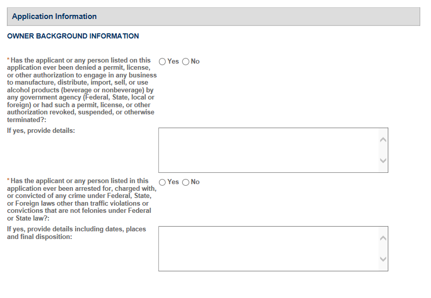 - Basic Permit Information (OMB No. 1513-0018): The information is used to determine eligibility of the applicant to engage in certain operations, to determine the location and extent of operations, and to determine whether the operations will be in conformity with Federal laws and regulations. The information requested is required to obtain or retain a benefit and is mandatory by statute (27 U.S.C. 203 and 204 (c)).