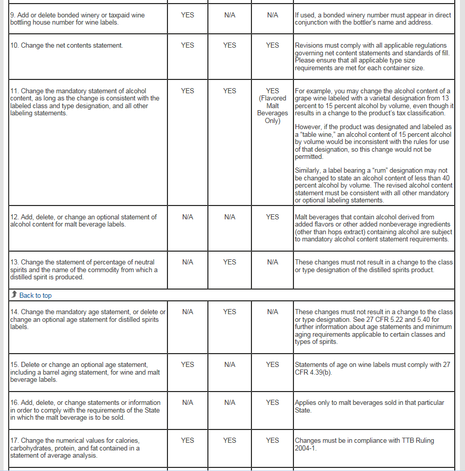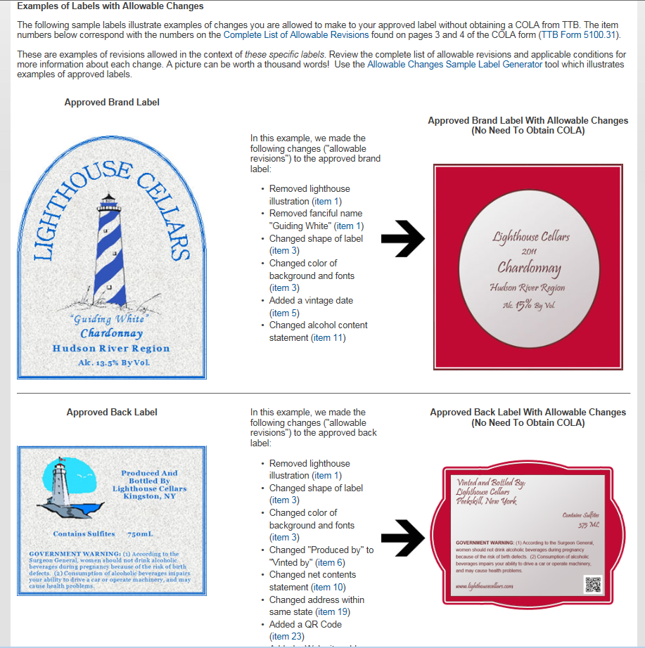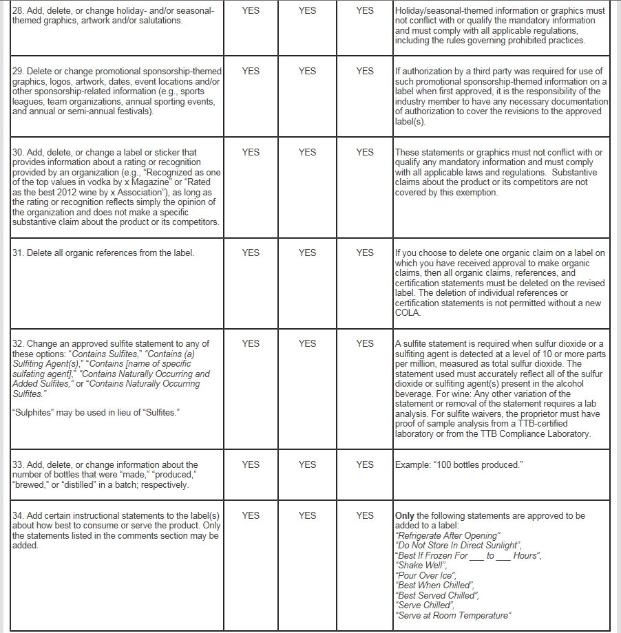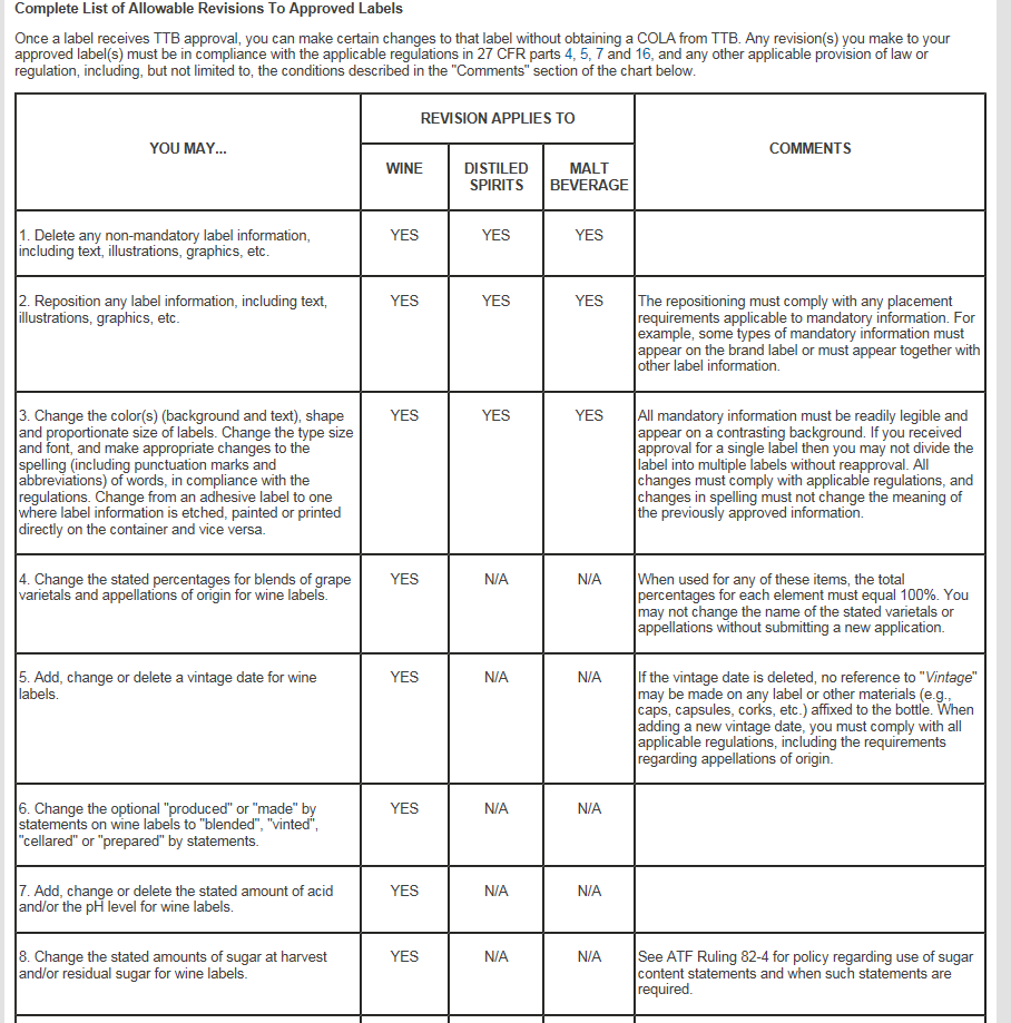 The List of Allowable Revisions to Approved Labels shown below is the updated list that will be included in Part V of the revised paper form, TTB F 5100.31.
