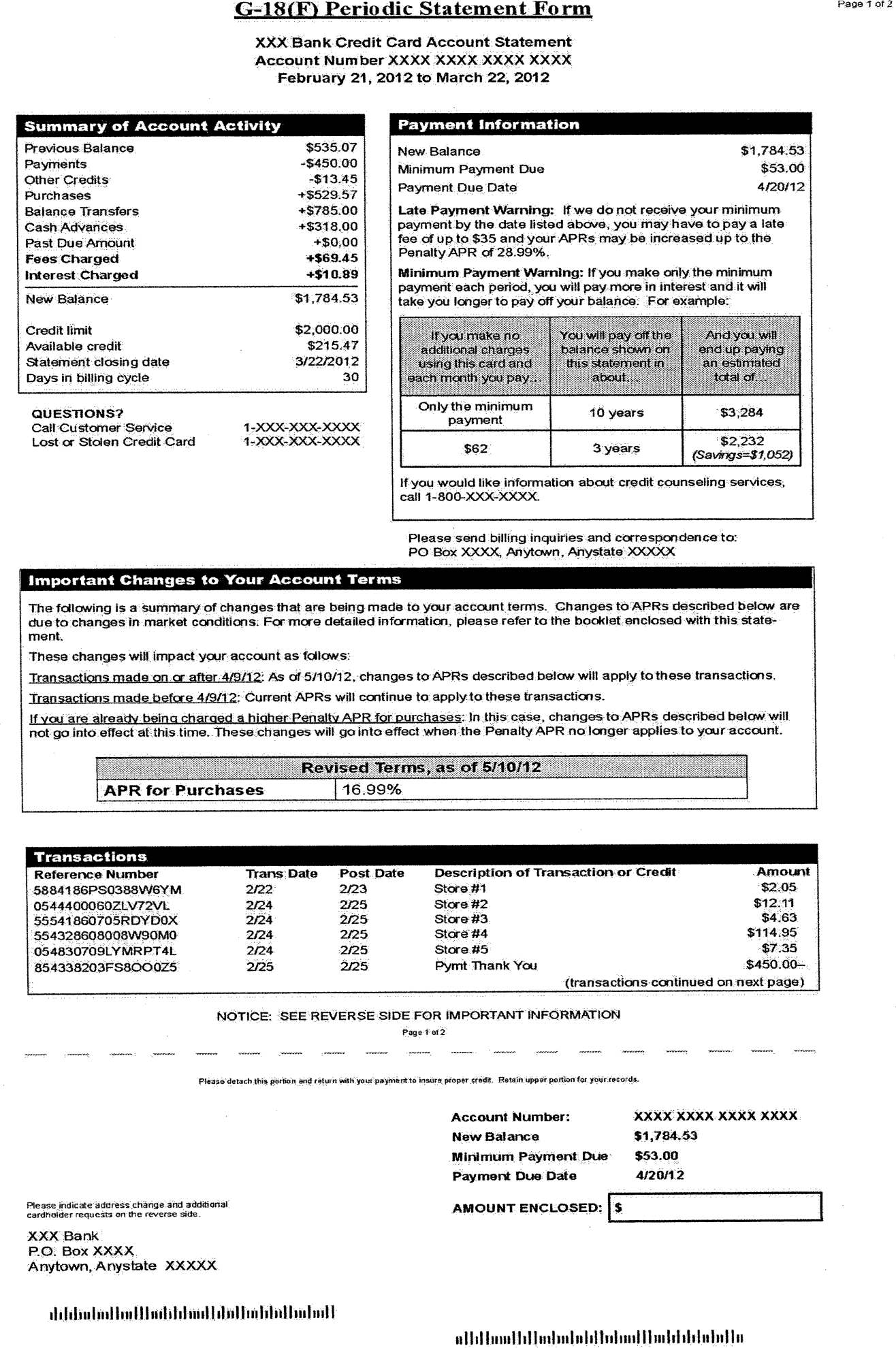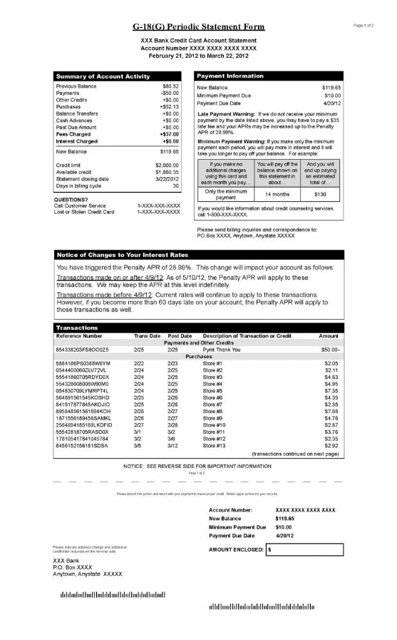 G-18(D) Periodic Statement New Balance, Due Date, Late Payment and Minimum Payment Sample (Credit cards) (§ 1026.7(b))