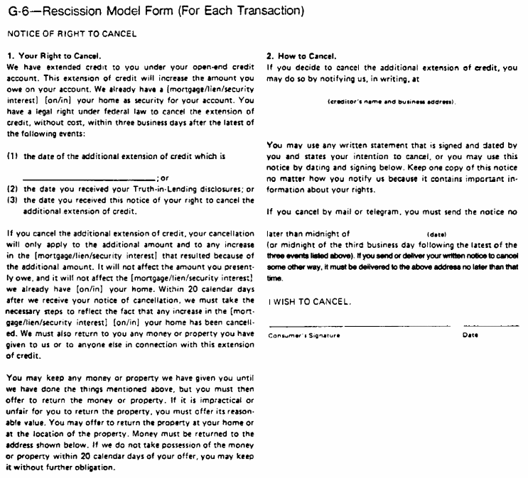 G-6 Rescission Model Form (For Each Transaction) (§ 1026.15)