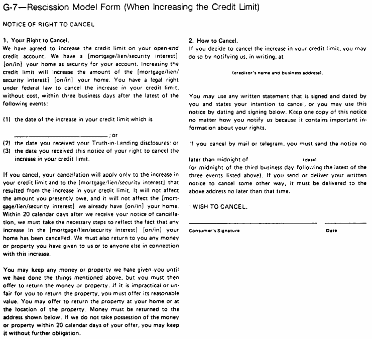 G-7 Rescission Model Form (When Increasing the Credit Limit) (§ 1026.15)