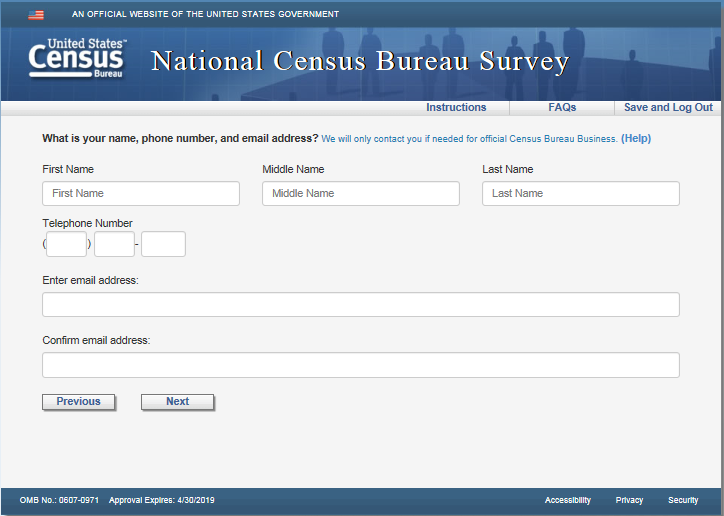 Version 2 - Remove blue instruction: “We will only contact you if needed for official Census Bureau Business”