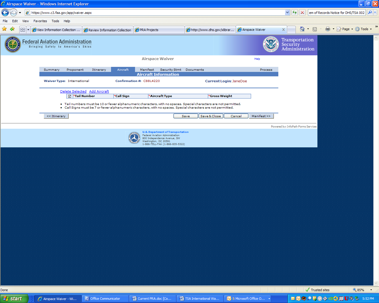⚠️ Notice: This form may be outdated. More recent filings and information on OMB 1652-0033 can be found here: