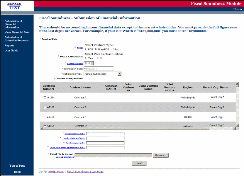 Fiscal Soundness-Submission of Financial information page-PRA