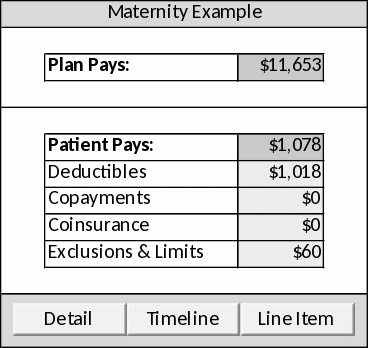 The MATERNITY_TIMELINE worksheet which shows the claim-by-claim development of the consumer cost sharing amount.
