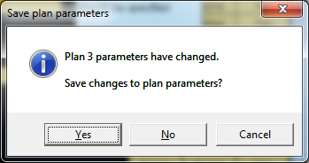 Clicking the Yes button will save the updated parameters for the plan. Clicking the No button will discard the changes to the parameters to the current plan and load the parameters for the next plan into the BENEFIT_DESIGN worksheet. Clicking the Cancel button will allow the user to continue reviewing or editing the updated parameters for the current plan before deciding to load a different plan.