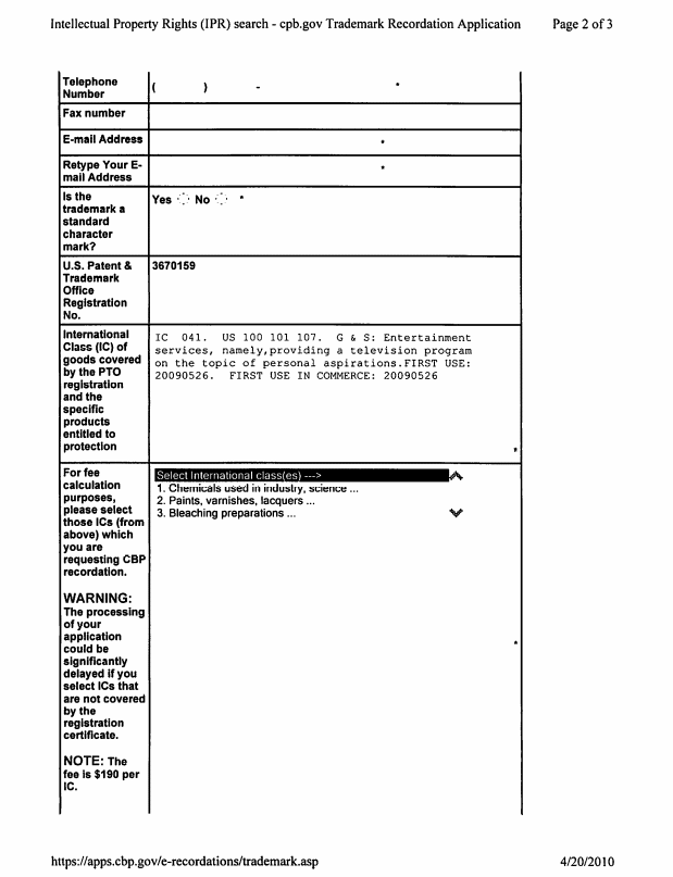 to the Intellectual Property Rights e-Recordation (IPRR)