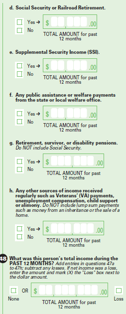 48. What was this person’s total income in 2015 from all sources? Include income amounts for questions 47a to 47h that were marked (X) "Yes."