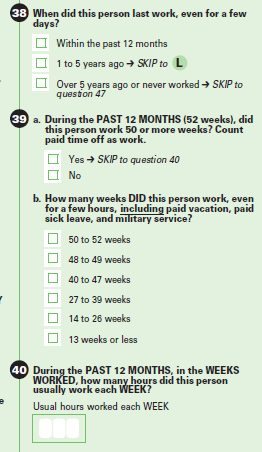 40a. During the 52 weeks covering 2015, did this person work EVERY week? Count paid vacation, paid sick leave, and military service as work.