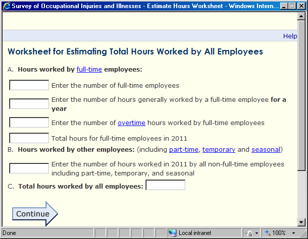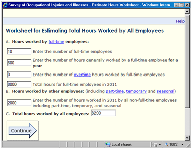 Have difficulty understanding what they are supposed to enter in the “Total hours worked by all employees” field and in using the optional worksheet that accompanies this field (Section 1: Establishment Information).