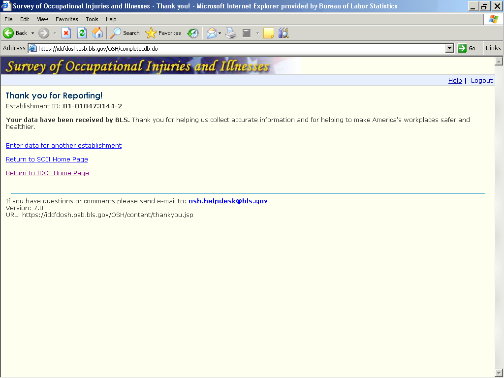 “Your permanent Internet Data Collection Facility (IDCF) account number appears below. This will be emailed to you.