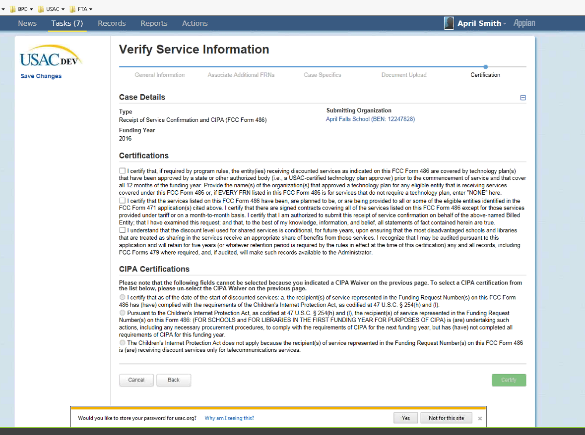 Certification by Administrative Authority to Billed Entity Compliance with the Children's Internet Protection Act Form; Certification of Compliance with the CIPA and Technology Plan Requirements Form;