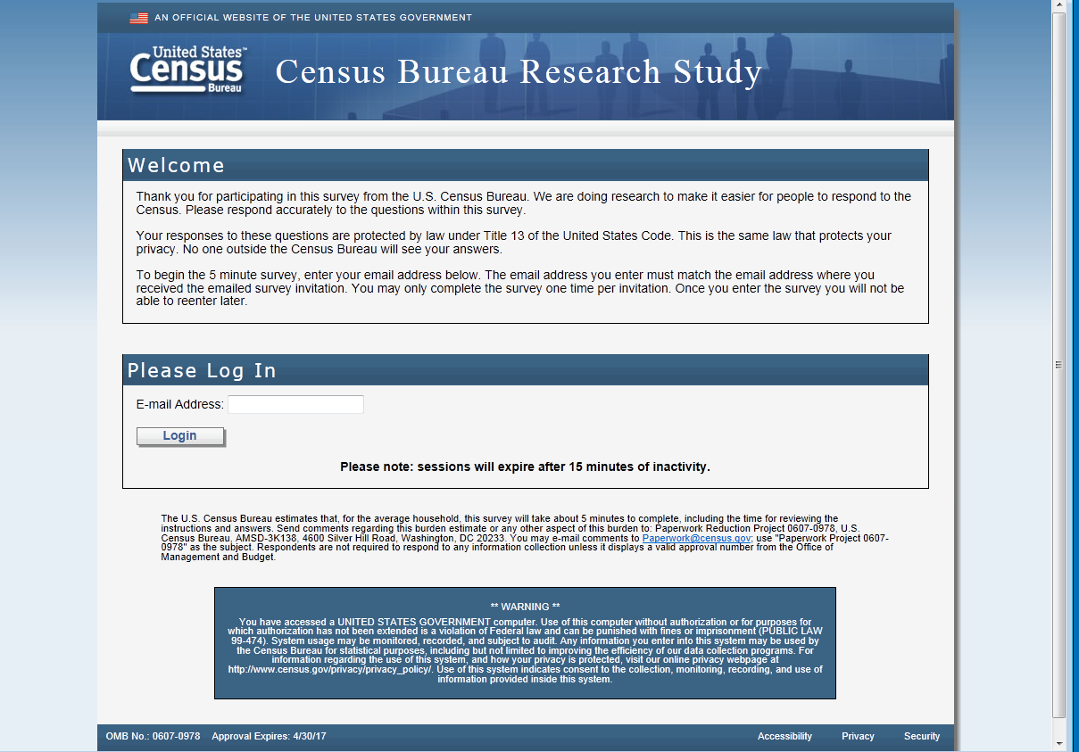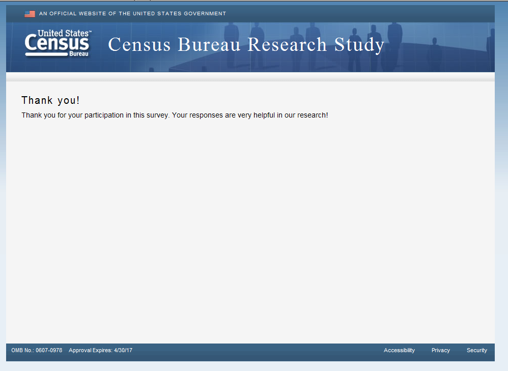 Figure 26: Screen when survey is closed out or when have previously entered survey
