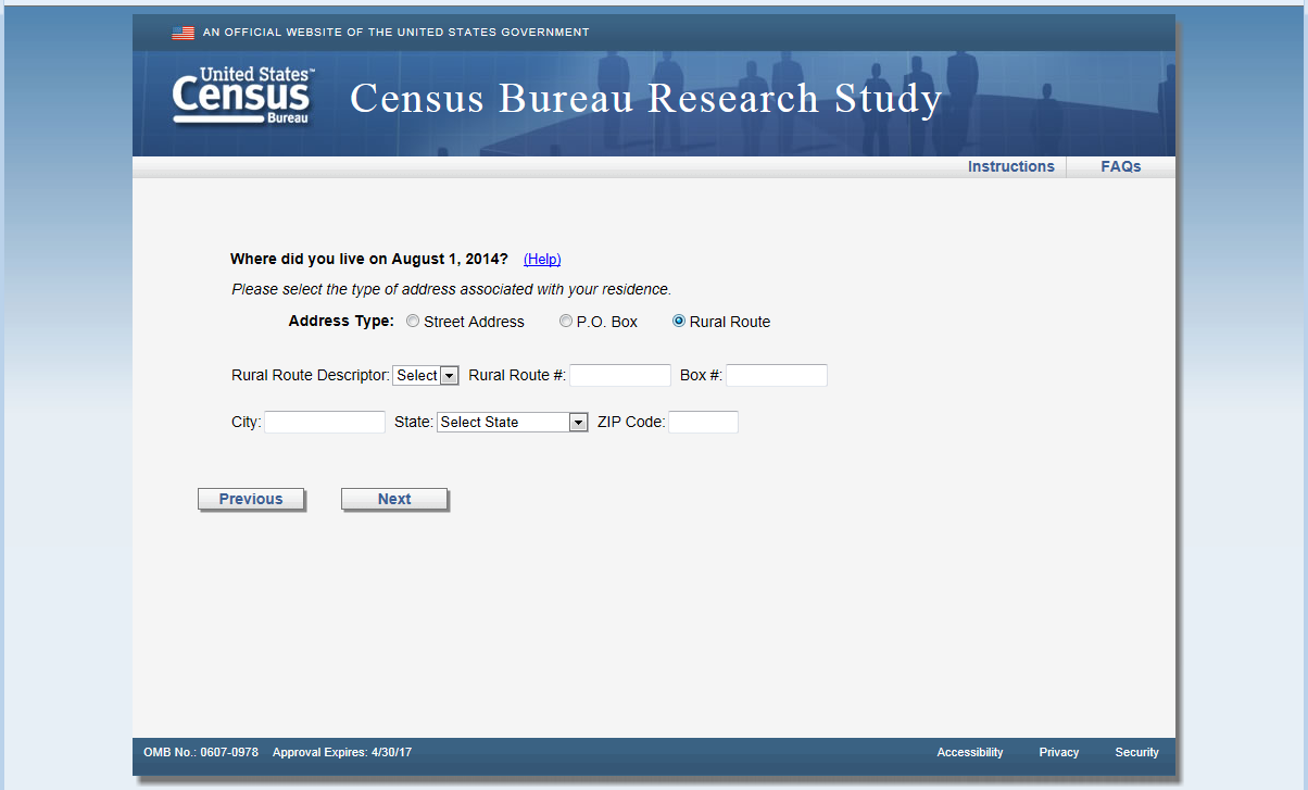 This survey will need to be mobile optimized following the guidelines used in the 2015 Census Test and the 2015 National Content Test. Many of the screens have been used in prior small-scale research projects with only minor changes to the questions or numbering. |