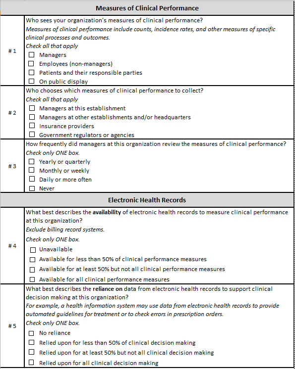 This question asks about measure of clinical performance. What were you including in your answers? What sort of measures do you track?
