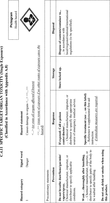 Label elements means the specified pictogram, hazard statement, signal word and precautionary statement for each hazard class and category.