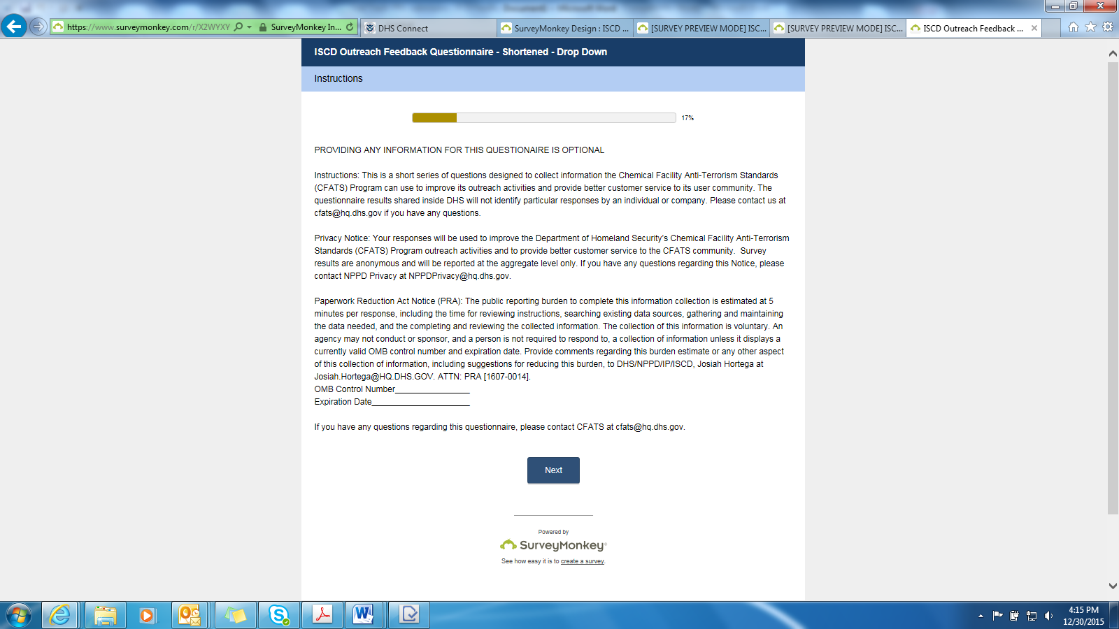 ISCD Feedback Questionnaire 12.30.15 Survey Monkey Screen Shots