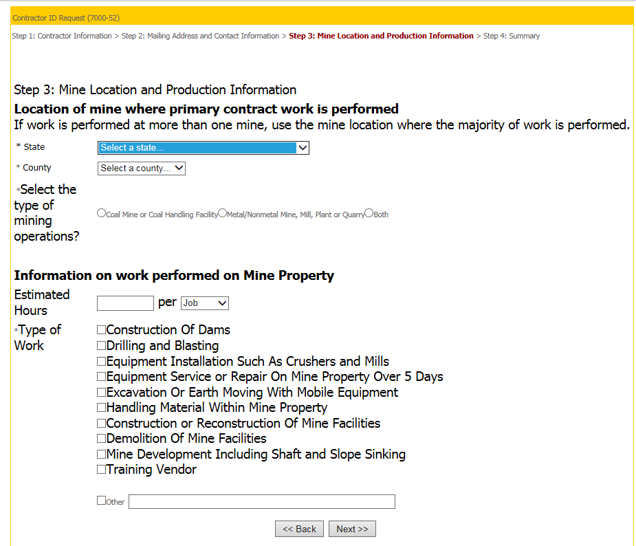 Screen shots of current 7000-52 on egov