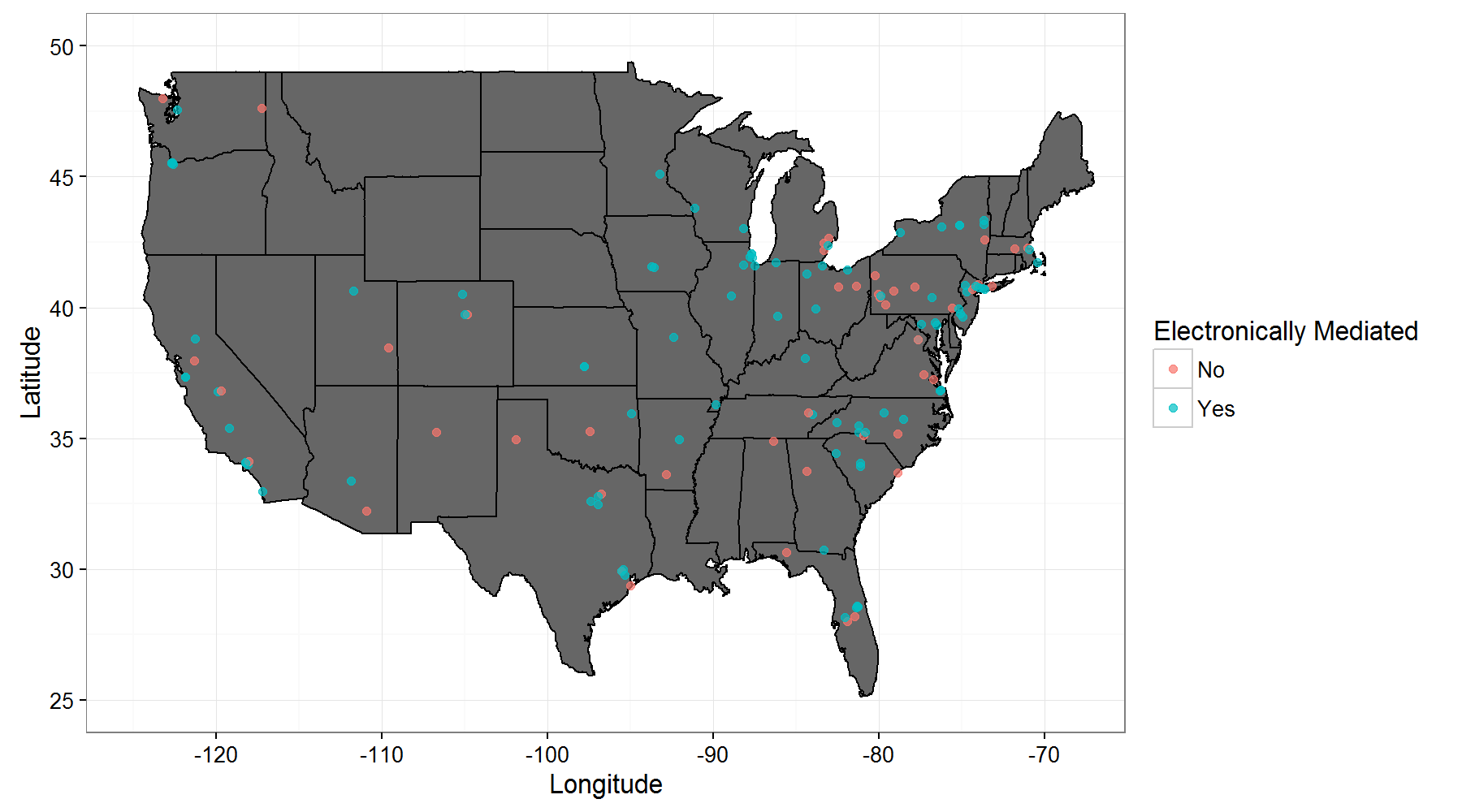 Not Electronically Mediated (n = 10) |