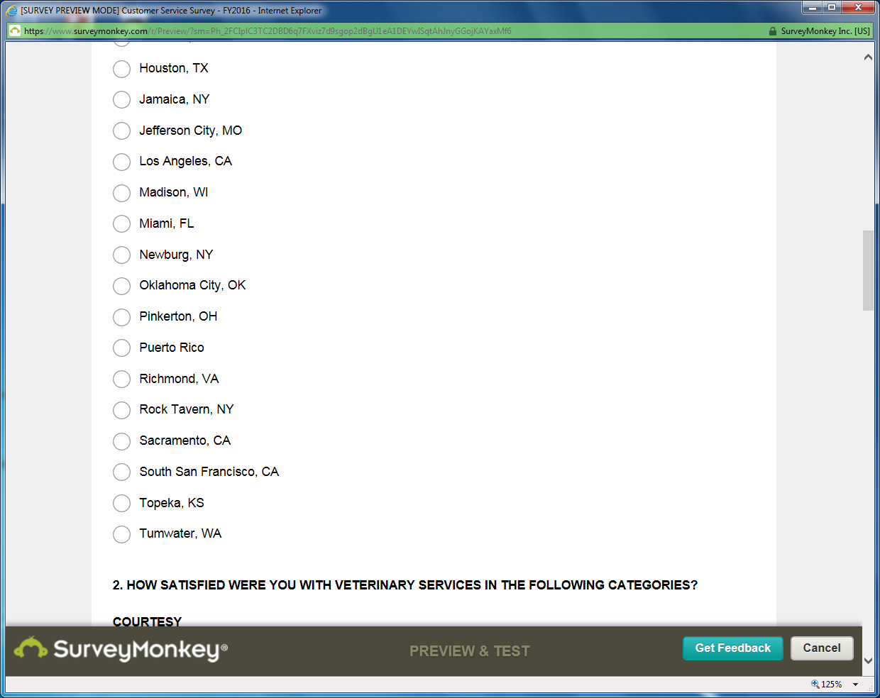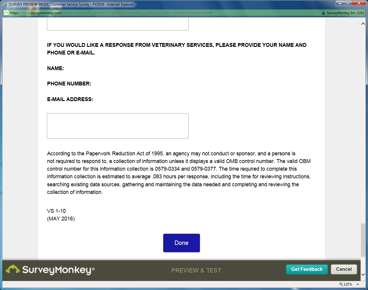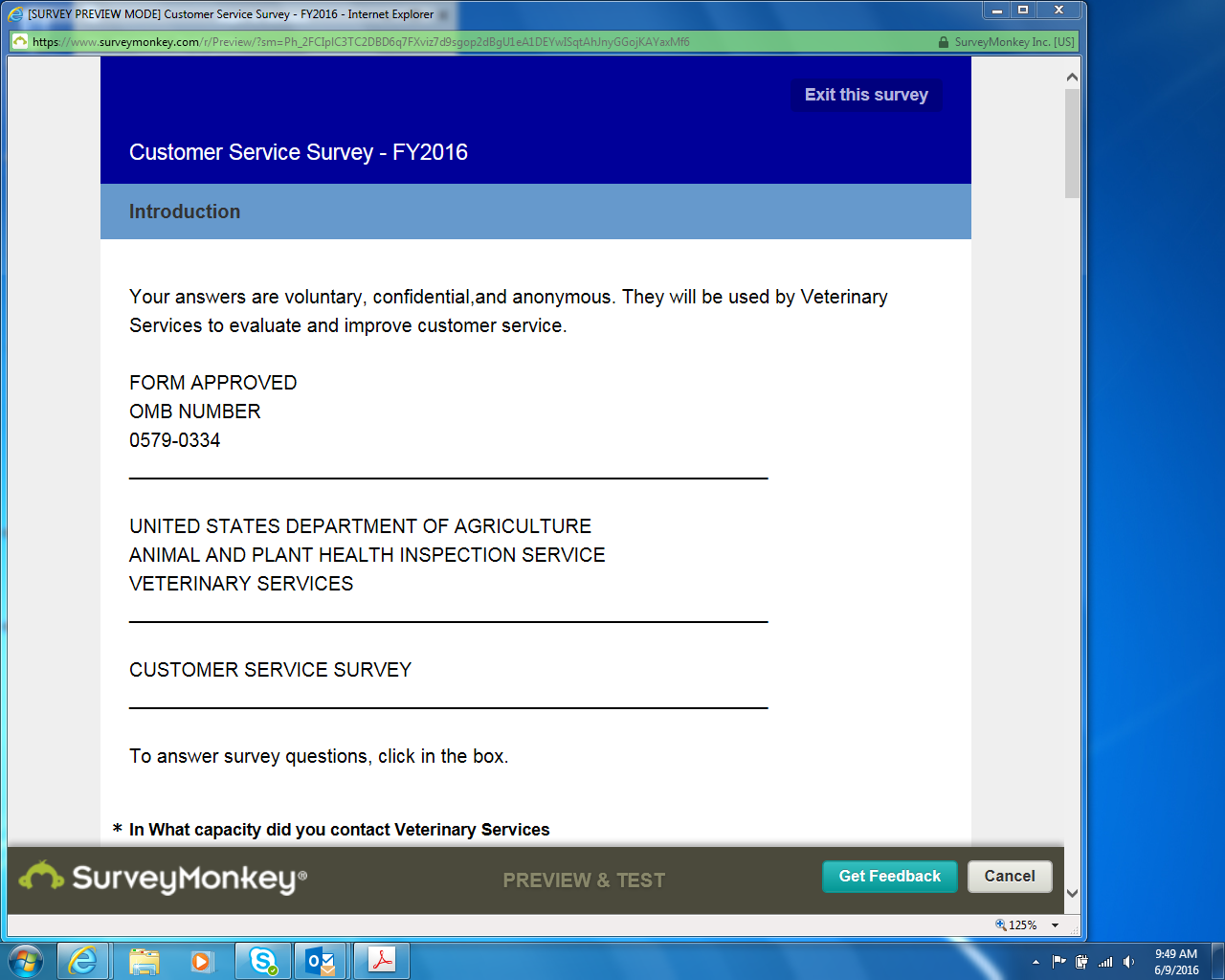 Veterinary Services National Import Export Services Customer Service Survey Project