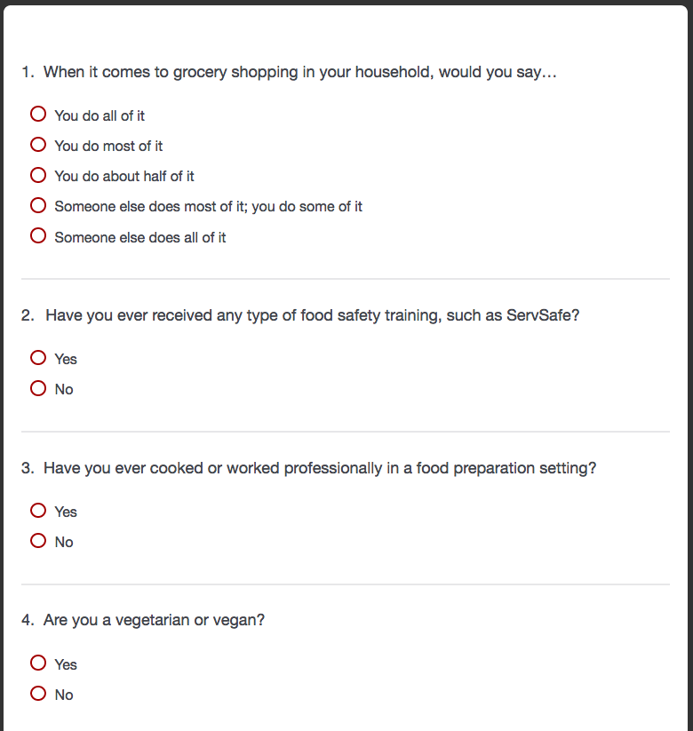 Have you ever cooked or worked professionally in a food preparation setting? (Select one.)
