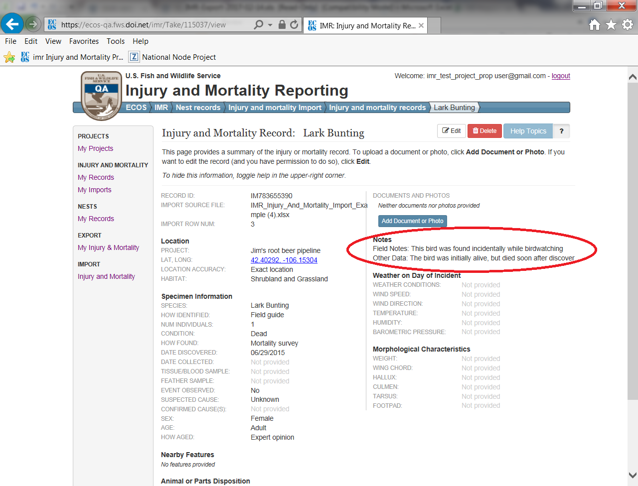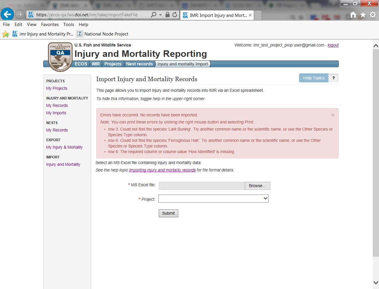 Injury and Mortality Reporting (IMR) System User Guide for Non-Federal Users